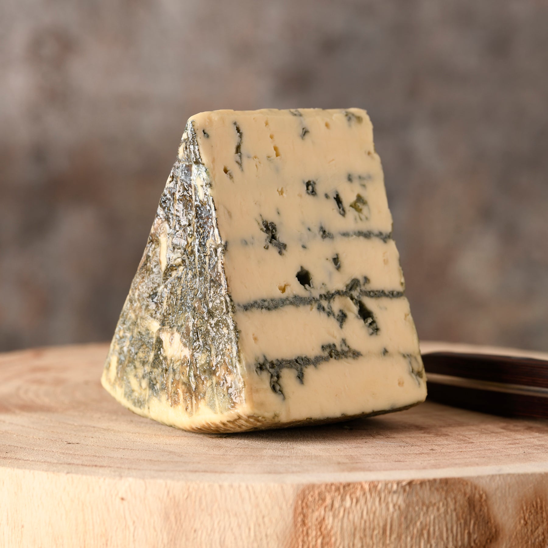 Semi hard, smooth creamy English cows milk blue with a good mellow depth of flavour.