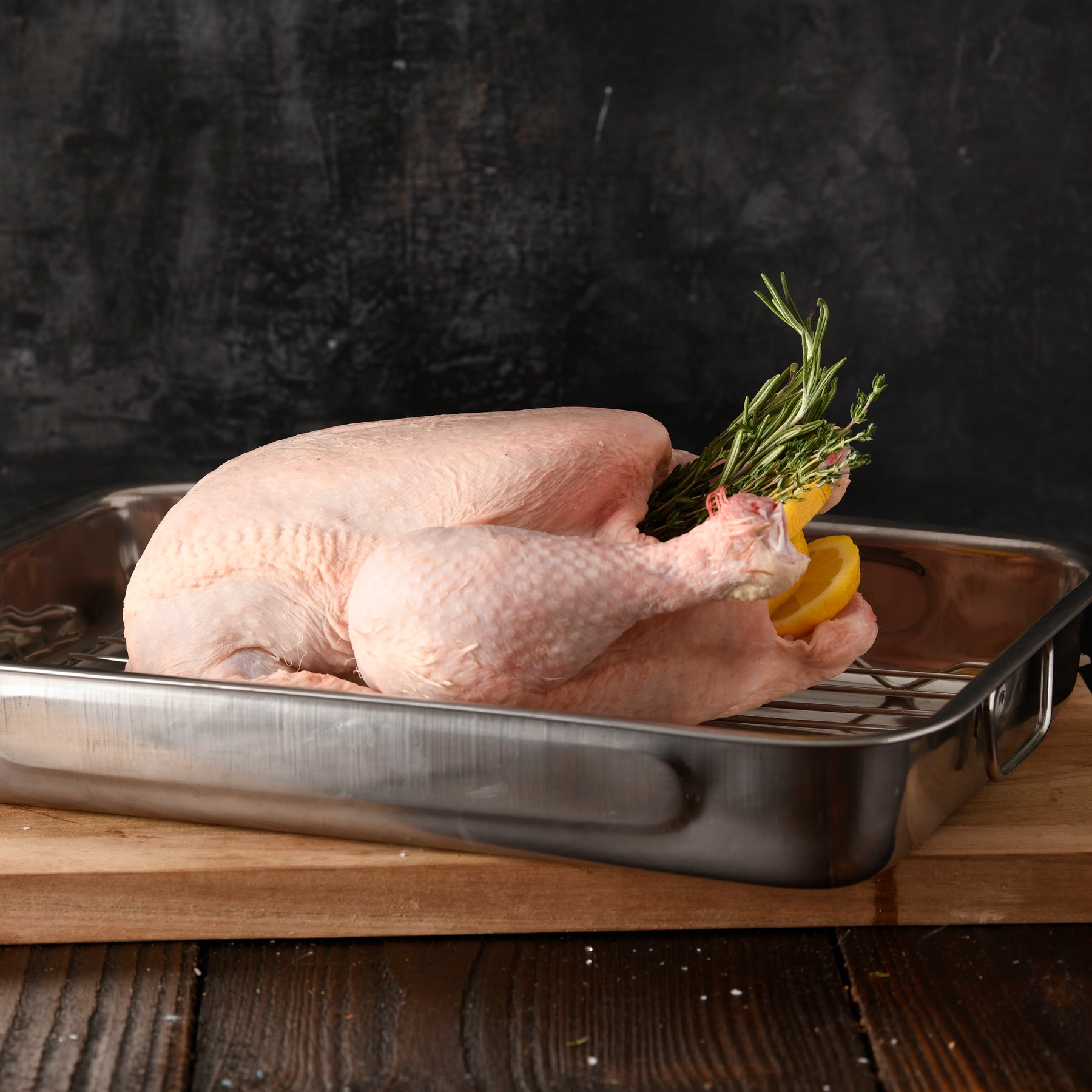 We source our free range birds from Creedy Carver in Devon. These chickens are reared to the highest welfare standards. They have access to large, grassy areas planted up with trees to offer shade and encourage the chickens to range and mature slowly. These birds have excellent meat yield and are all hand-finished.
